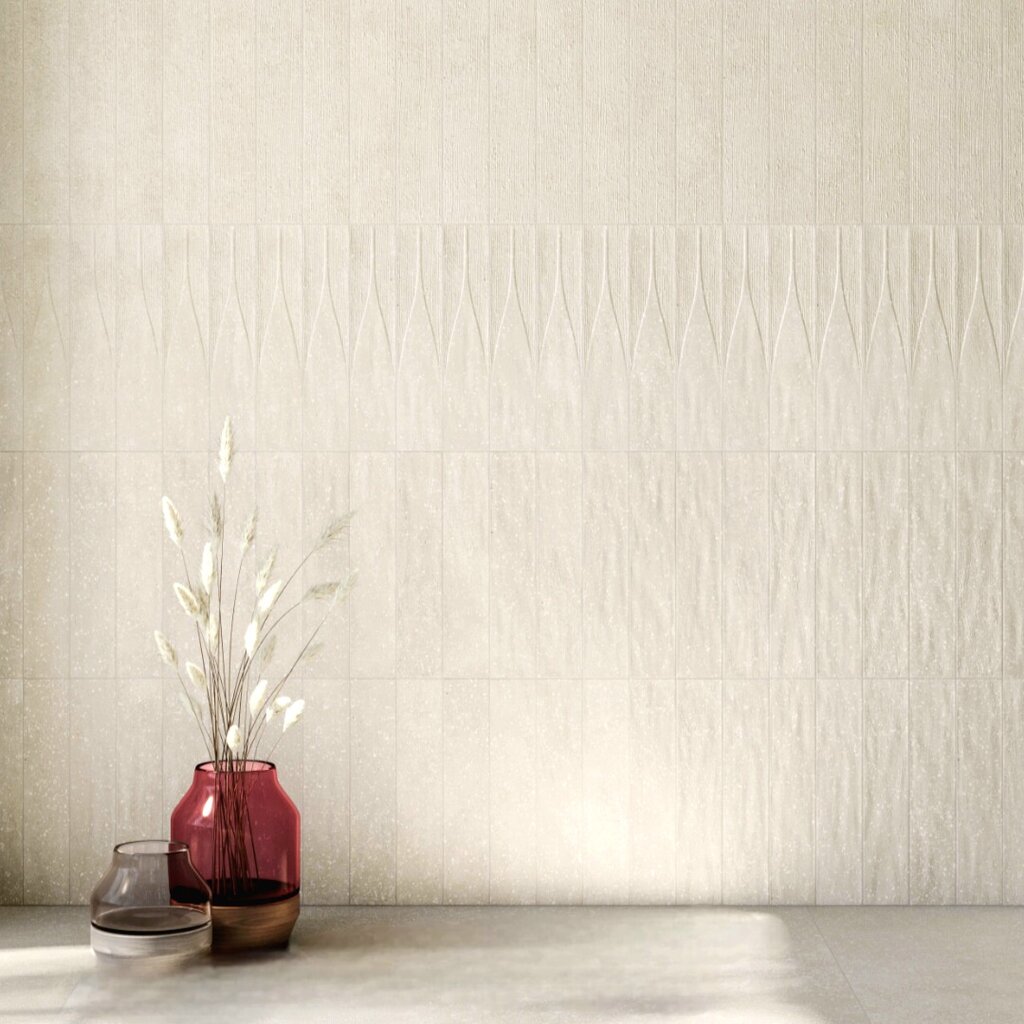 Peronda 3″x 12″ Trace White Plain and Trace White Waves Wall Tile